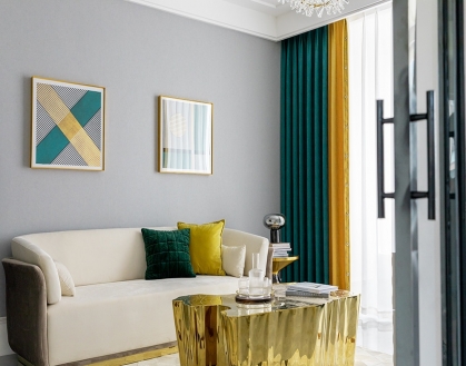 設計理念:這一套森林綠和姜黃的完美融合,似炫酷的北極光,是上帝任性潑灑的抽象畫,夜雪與光的美妙結合。浮光閃爍的螢火,似吟游詩人抖落的夢幻夏夜,輕靈朦朧簇擁成歌。