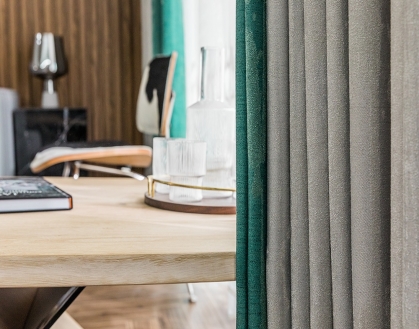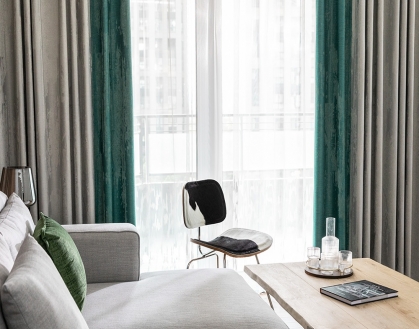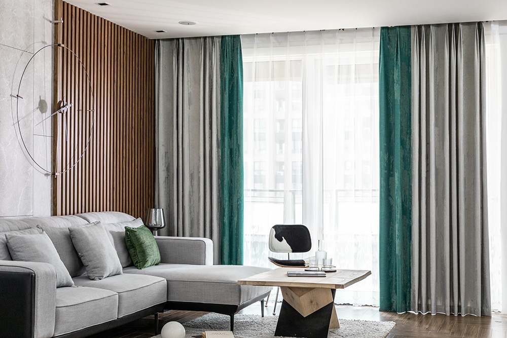 設(shè)計(jì)理念:厚重且低彩度,但絕不沉悶,海王綠在這套方案中作為點(diǎn)綴色,搭配中性色的銀魚白,一股清透、低調(diào),富有涵養(yǎng)的藝術(shù)氣息撲面而來,視覺效果還是非常出彩的。