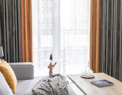 設計理念:略帶清冷的橄欖灰大面搭配自帶溫度的杏黃的裝點,冷與暖的相互交融,猶如四季輪轉時的溫度交替,將自然的韻味與優雅的質感表現的淋漓盡致。