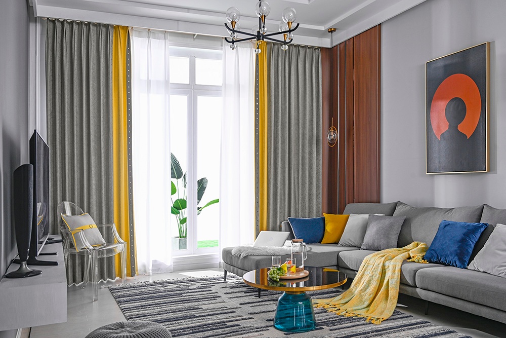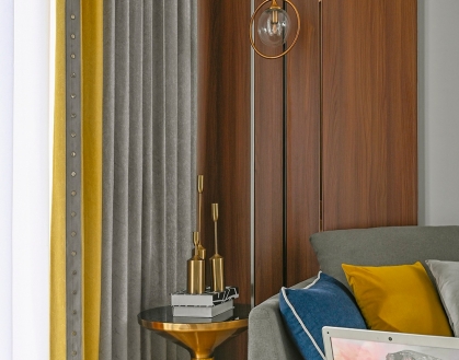 設計理念:用大量的暖灰色有別于黑色和深棕色色相的沉重感。這種帥氣的配色方案可以營造高端大氣的氛圍,特別是在添加了亮麗的雅梨黃之后,使這個黑白灰空間洋溢著極簡抽象派藝術氣息。