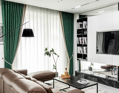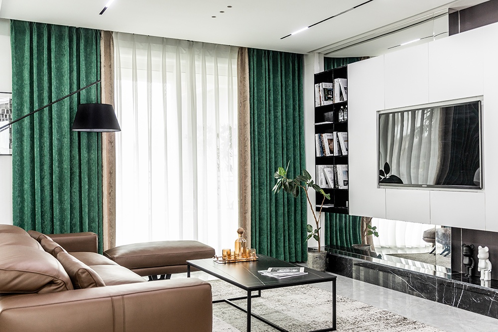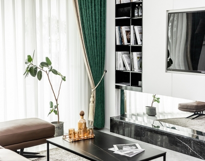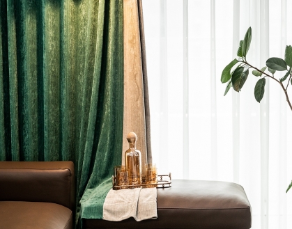 設(shè)計(jì)理念:在遠(yuǎn)離的都市森林中,是蔥郁的草木和寂靜的曠野。冰咖啡色是千年的土地,森林綠是千年的土地上生長(zhǎng)的樹(shù)木,陽(yáng)光透過(guò)玻璃窗擁抱這套軟飾,讓空間更加親近自然舒適溫馨。