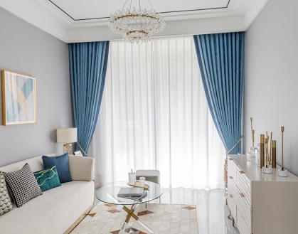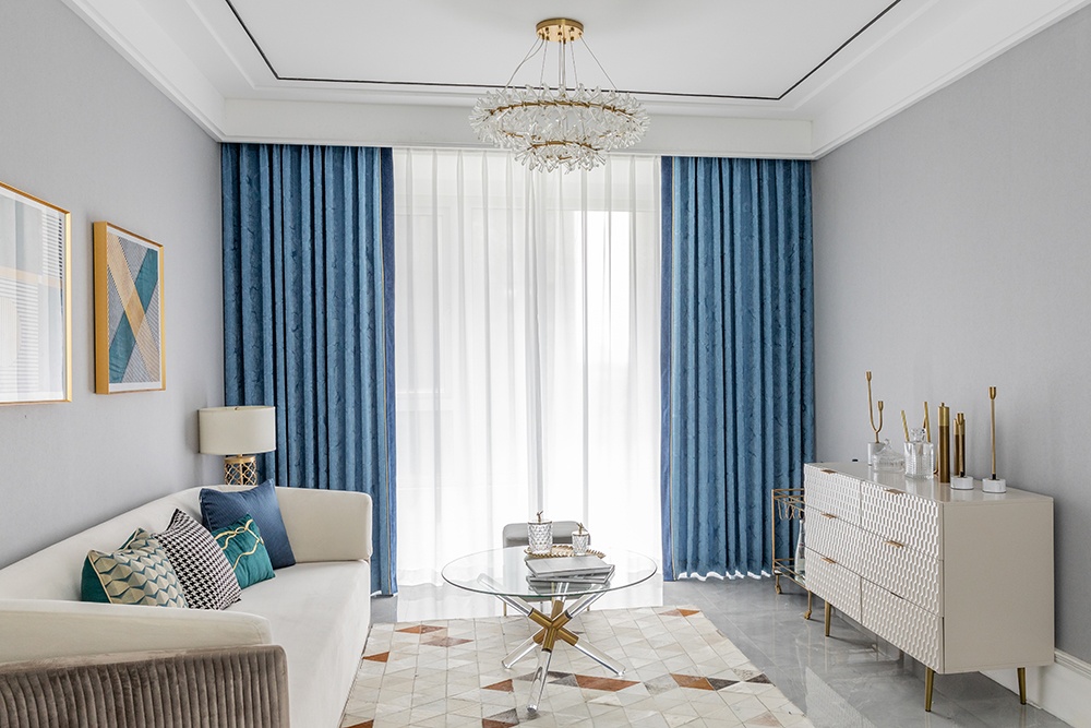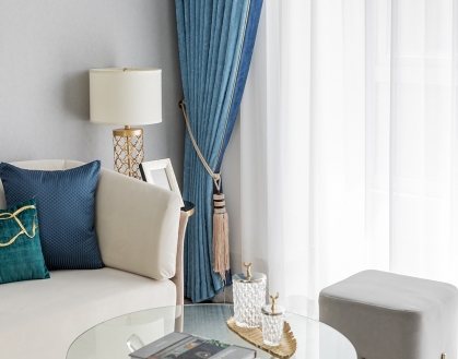 設計理念:矢車菊藍雖不是居家設計中藍系“寵兒”,但它絕對擁有讓人為之著迷的魔力,優雅尊貴,溫柔浪漫。黛藍的相伴隨行,嫩黃色的相間點綴,使整體色調有了動態感和時髦感。