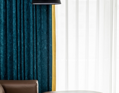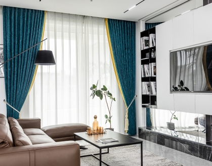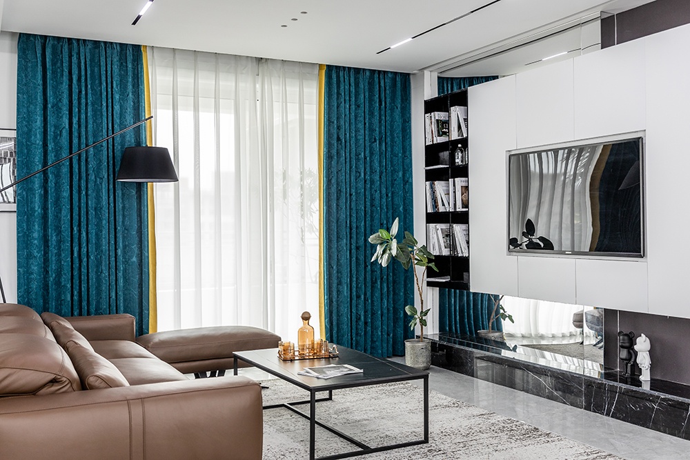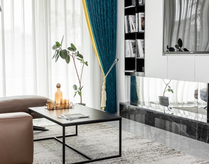 設計理念:現代簡約之風貌,藏匿在極光絢麗的光影之間,穿透空間的燦爛,交織著旭日東升的蓬勃。在孔雀藍和蜂蜜黃吟奏的節(jié)奏里愈發(fā)精神,更添置了一絲活潑,把極光收進奶油里。