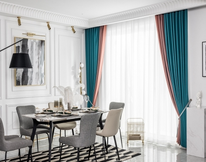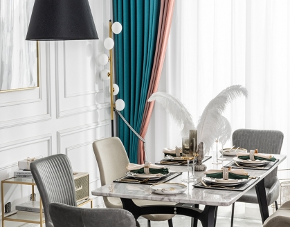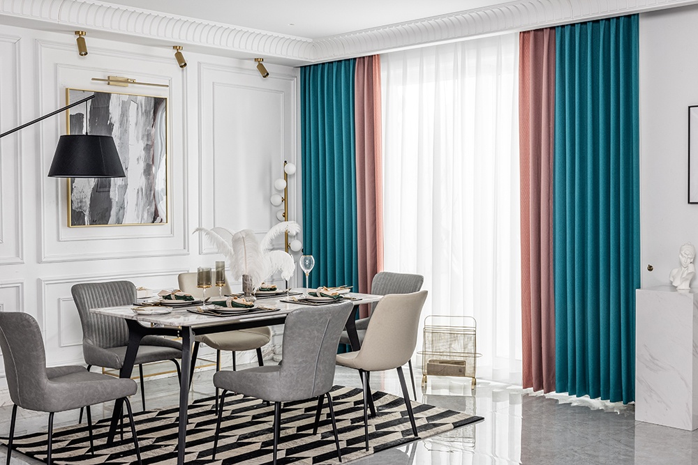 設計理念:在這套案例中,灰白色主調略帶一點憂桑,在孔雀藍和極光紅的碰撞護衛下,避免了空間過于單調的傾向,好似把絢爛活力的彩虹借給溫柔恬靜的月光,將空間渲染的更具層次感。