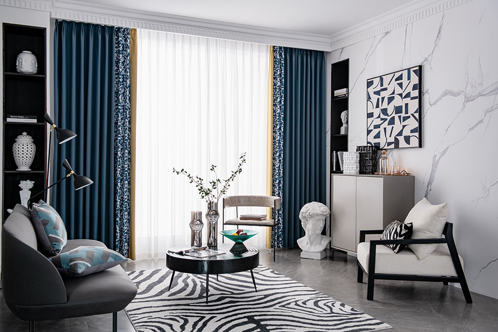 設(shè)計(jì)理念:將藏藍(lán)色與亮白、磨砂黑混合使用,營造了整潔整潔干練的環(huán)境和氛圍,鮮亮的檸檬黃點(diǎn)醒沉睡空間,藏藍(lán)碎片紋樣裝飾,在冷靜從容的整體氛圍中獲得盛麗靈動(dòng)的視覺體驗(yàn)。