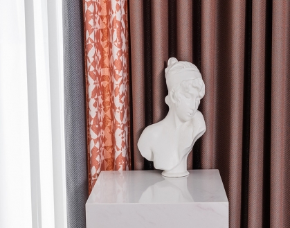 設計理念:百搭的極致灰與磚紅的結合,兼具理性與感性之美。如泰戈爾所寫“生如夏花之絢爛”。引一葉慢美學的諾亞舟,點一抹染風華的細朱砂,一朝和諧聚意濃,滿堂皆風情。